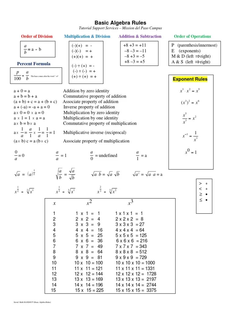 Printable Algebra Rules Cheat Sheet Printable Word Searches